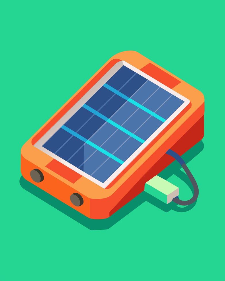 Small in size but big in function this solar charger packs a punch and can charge your devices quickly and efficiently.. illustration. Pro Vector