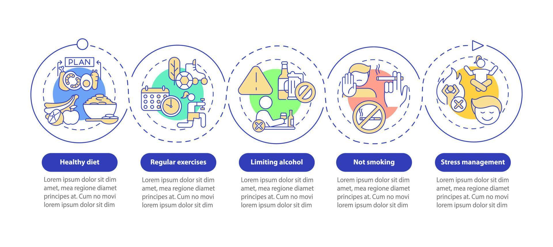 Hypertension treatment vector infographic template. Healthy diet presentation outline design elements. Data visualization with 5 steps. Process timeline info chart. Workflow layout with line icons Pro Vector