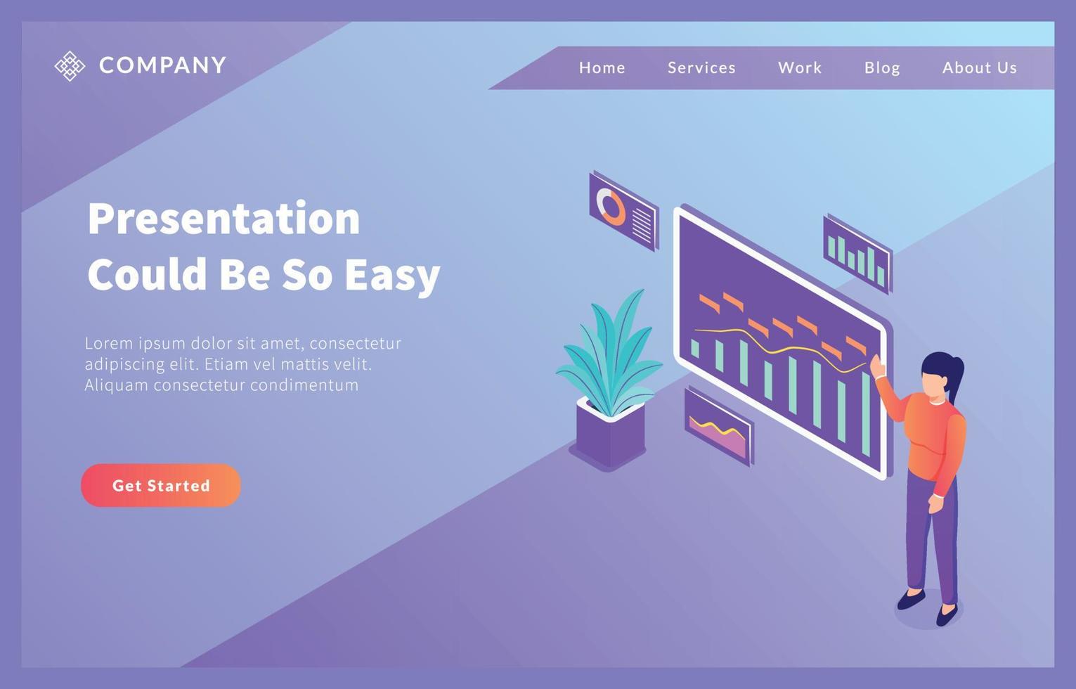 woman give presentation with graph and chart data analysis for website template or landing homepage Free Vector