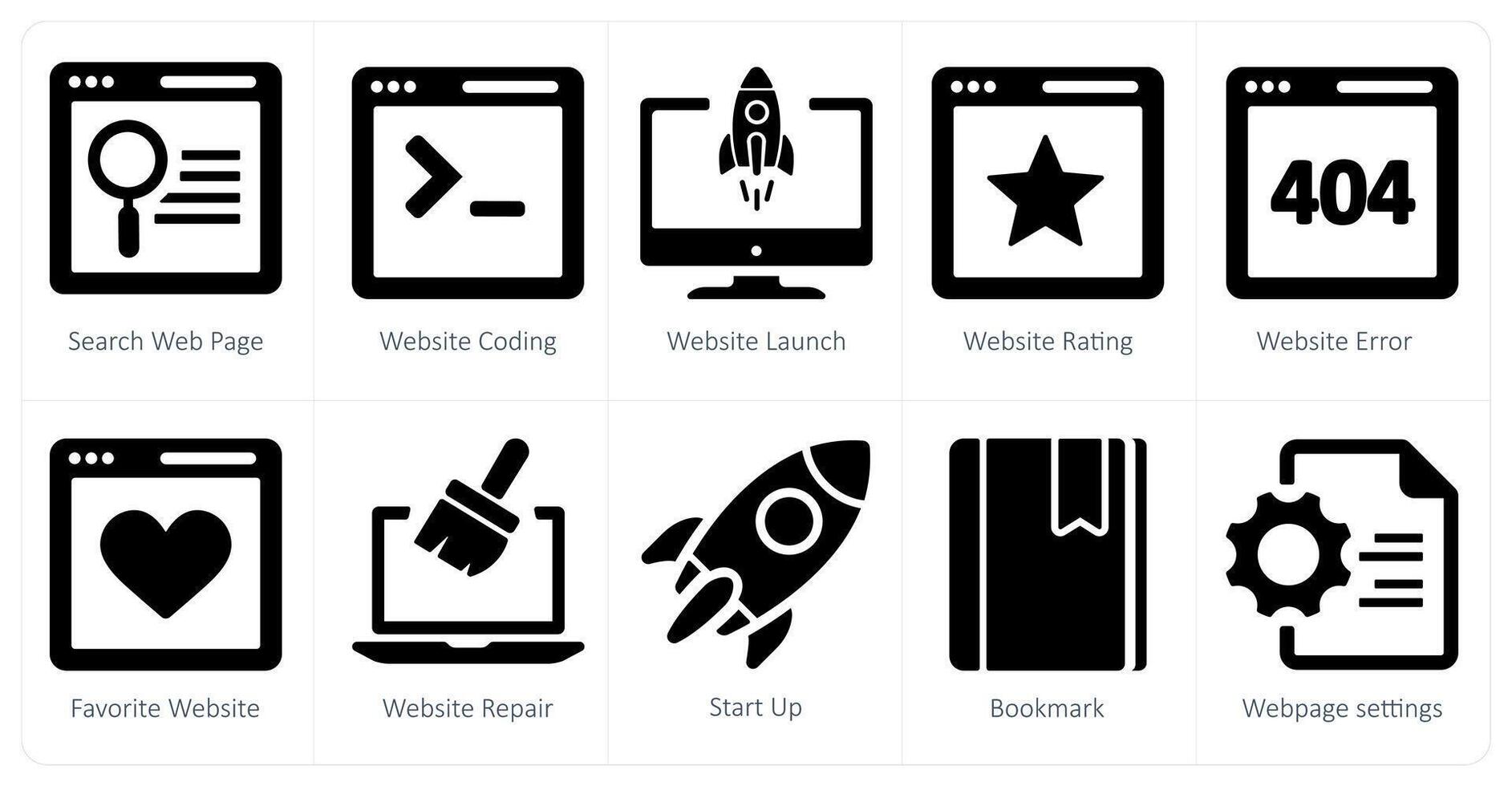 A set of 10 web marketing icons as search webpage, website coding, website launch Pro Vector