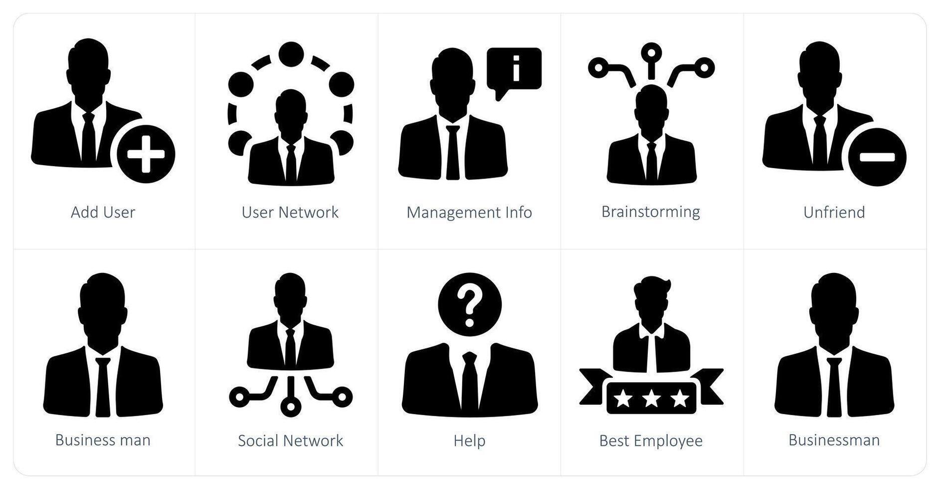 A set of 10 web marketing icons as add user, user network, management info Pro Vector