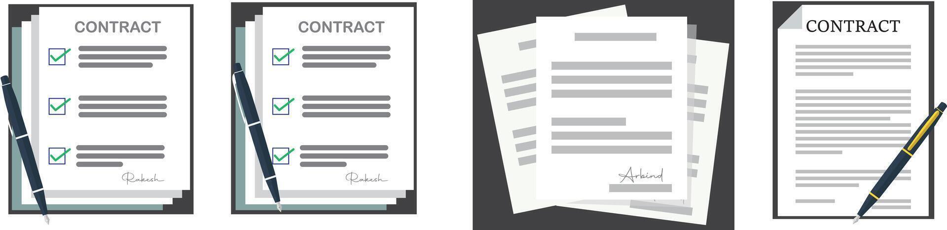 Open file folder with white leaf and sticky notes. Contract or document with text icon. Contract papers. Document, folder with stamp. Set of document Document icon set in flat style. Pro Vector