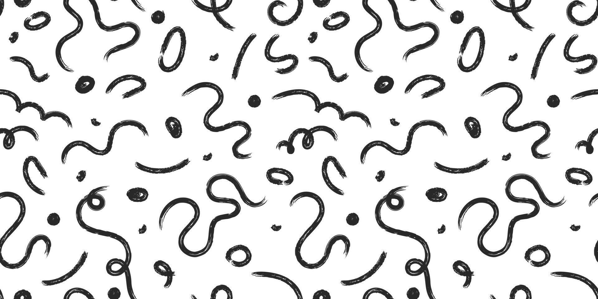 Hand drawn marker scribbles seamless pattern. Doodle curved lines ornament. Abstract background with black squiggles Pro Vector