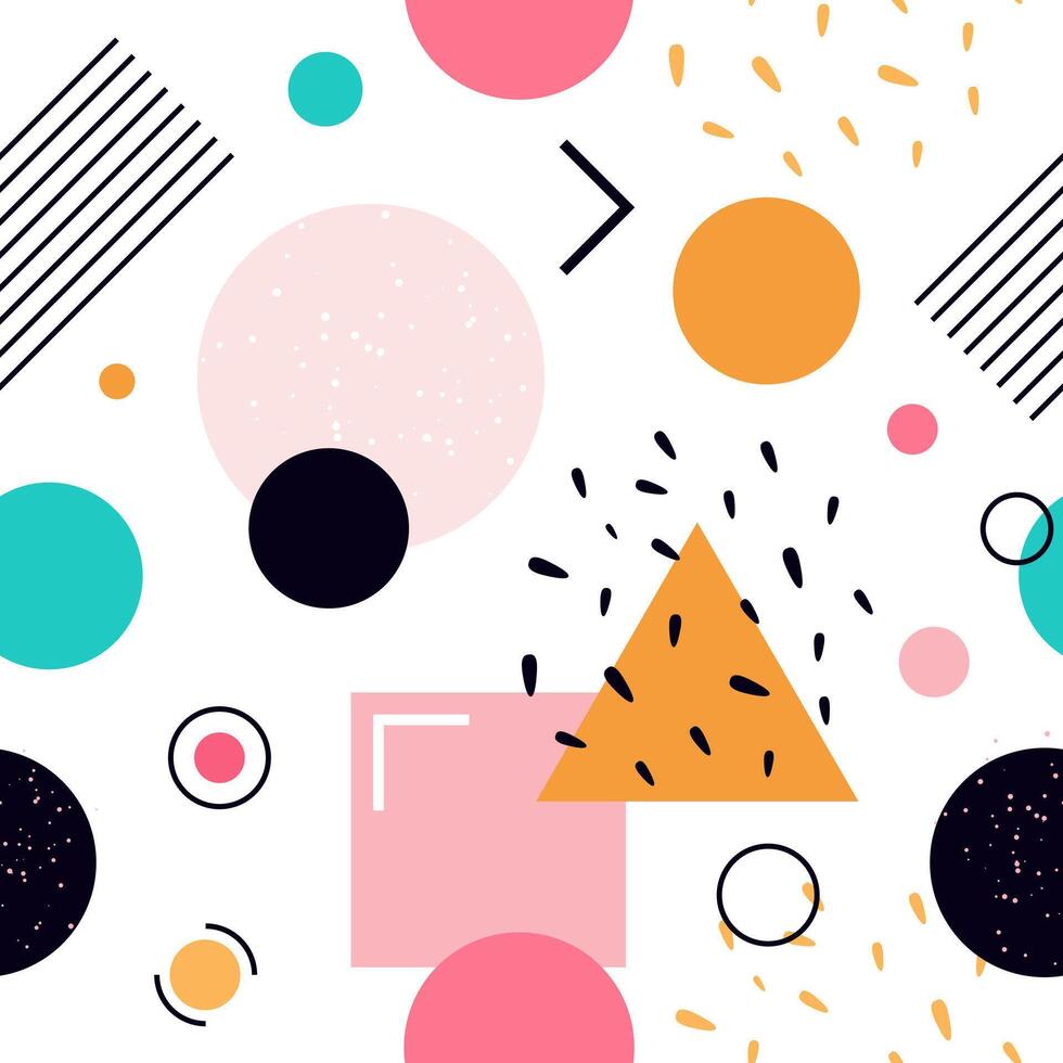 Memphis seamless pattern. tile with different geometric shapes, lines and dots. Abstract minimal design on white background for wrapping paper, textile, posters. Pro Vector