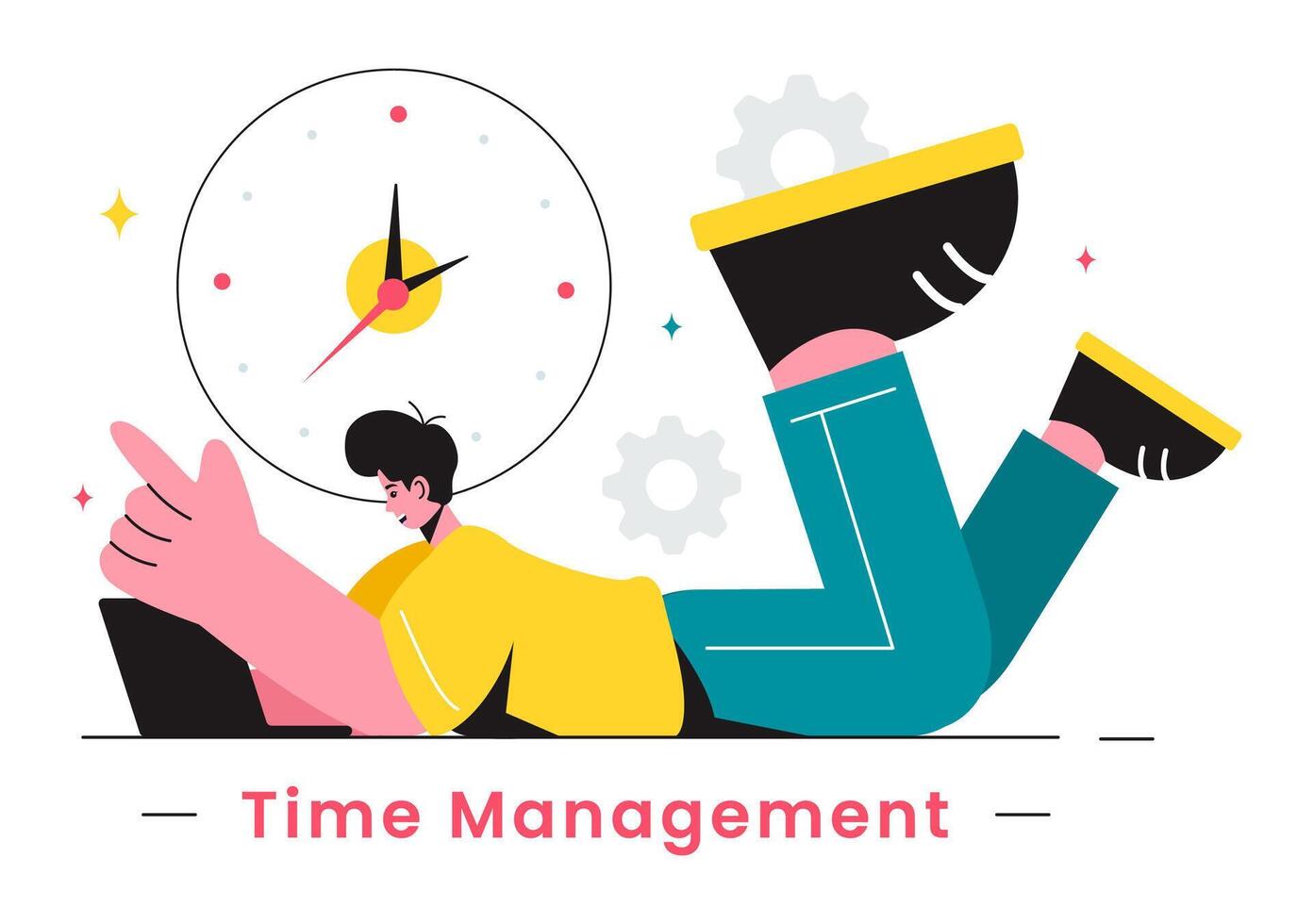 Illustration of Time Management with Clock Controls and Task Planning, Training Activities, and Schedule in a Flat Cartoon Style Background Pro Vector
