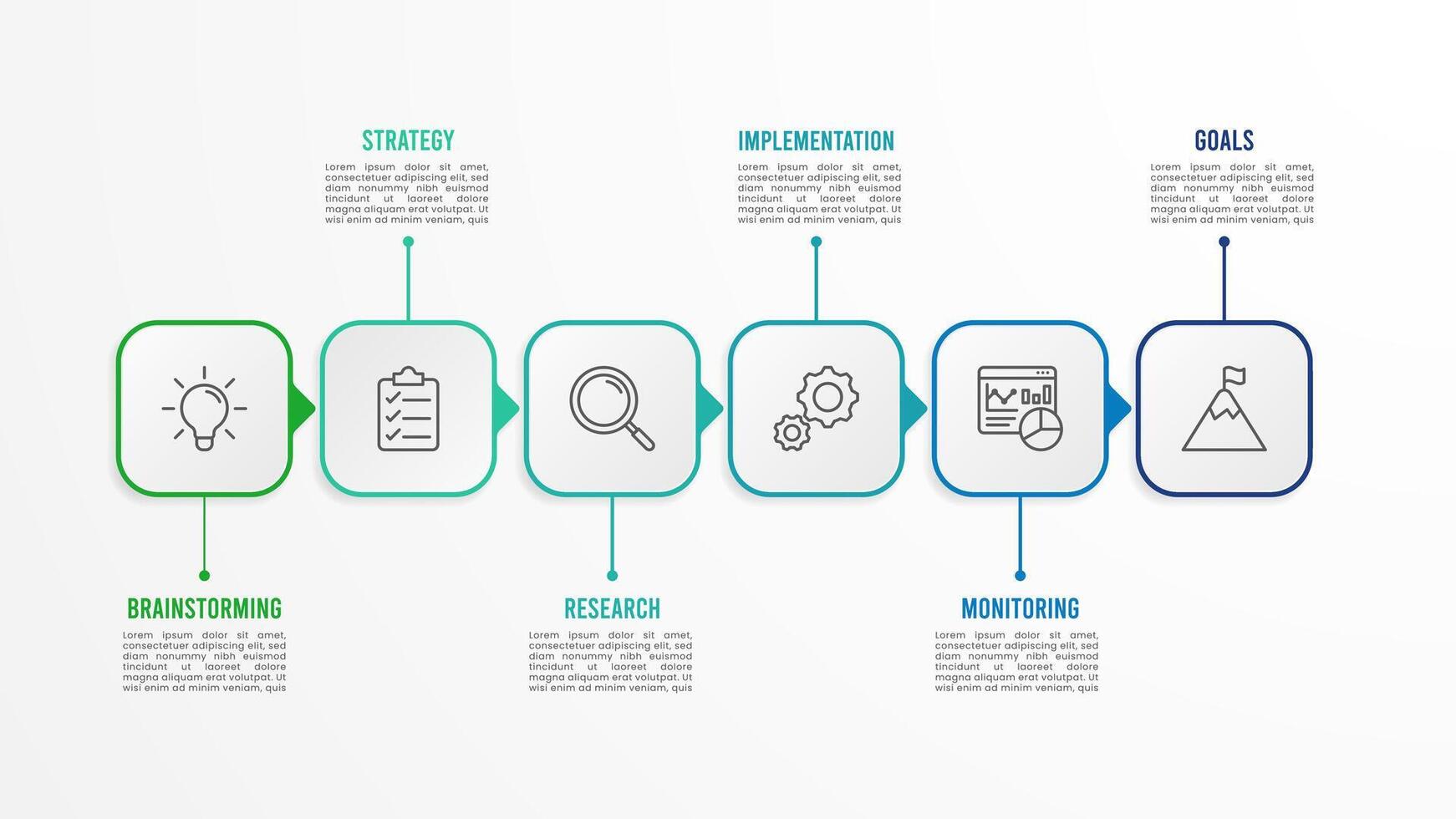 Infographic Illustration design template with icons and 6 options or steps. Can be used for process, presentations, layout, banner,info graph. element timeline six step option point infographics Pro Vector