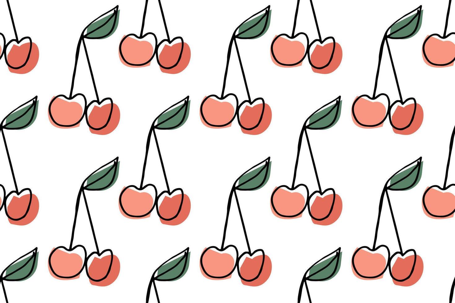 Cherry berries line icon seamless pattern . Trendy linear backdrop. Outline continuous illustration. Wallpaper, background, fabric, textile, print, wrapping paper or package design. Pro Vector