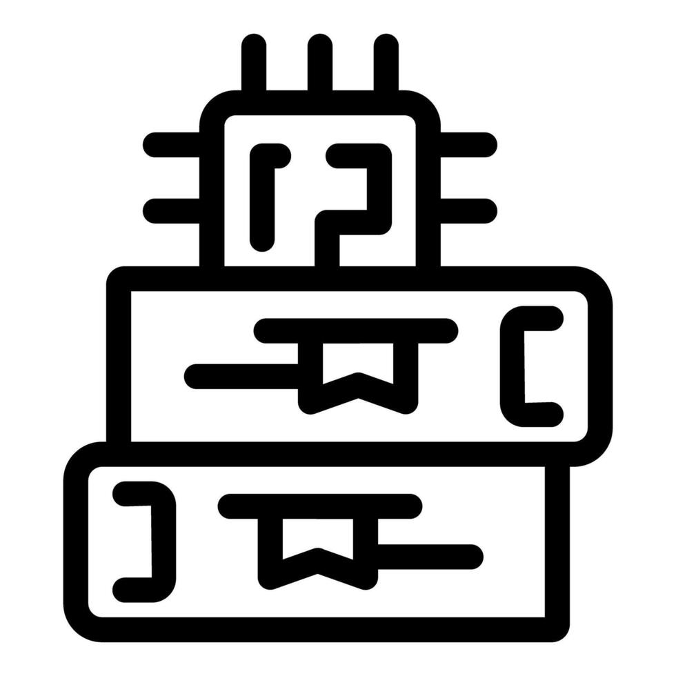 Microchip standing on books symbolizing artificial intelligence learning Pro Vector
