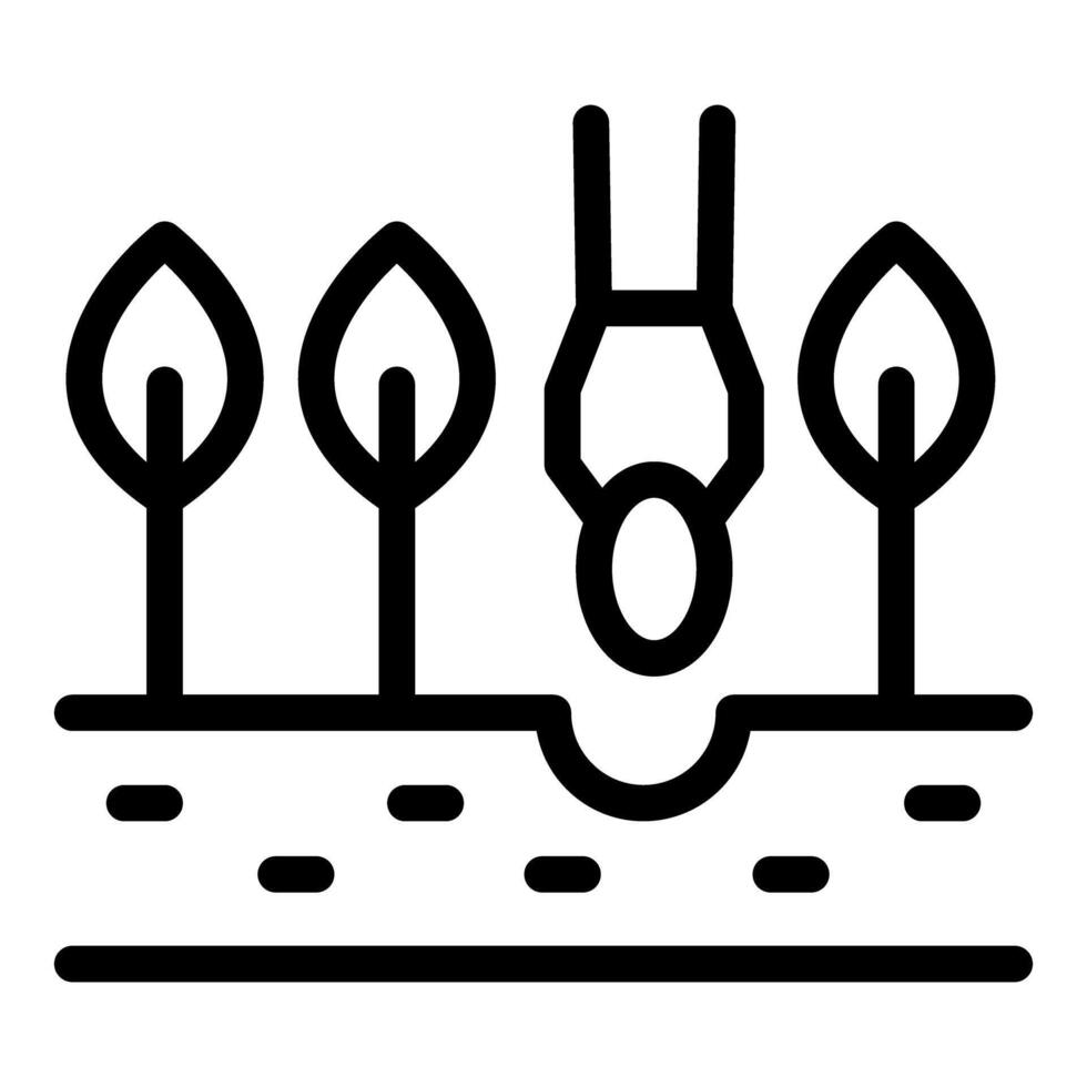 Man hanging himself from tree branch over empty grave outline Pro Vector