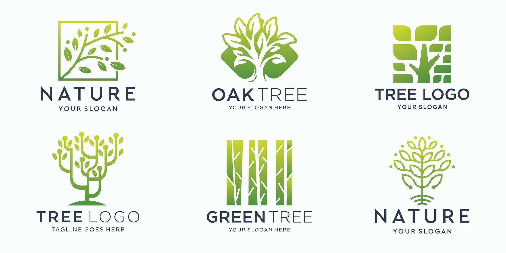 Set of logos with the icon of a tree abstract design template. Pro Vector