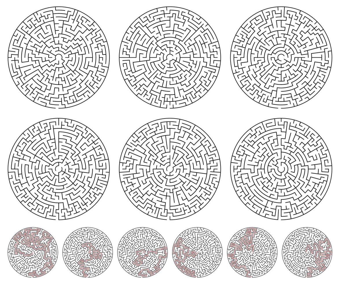Abstract circular maze game collection with solution for Cnc. laser cutting or kdp Pro Vector