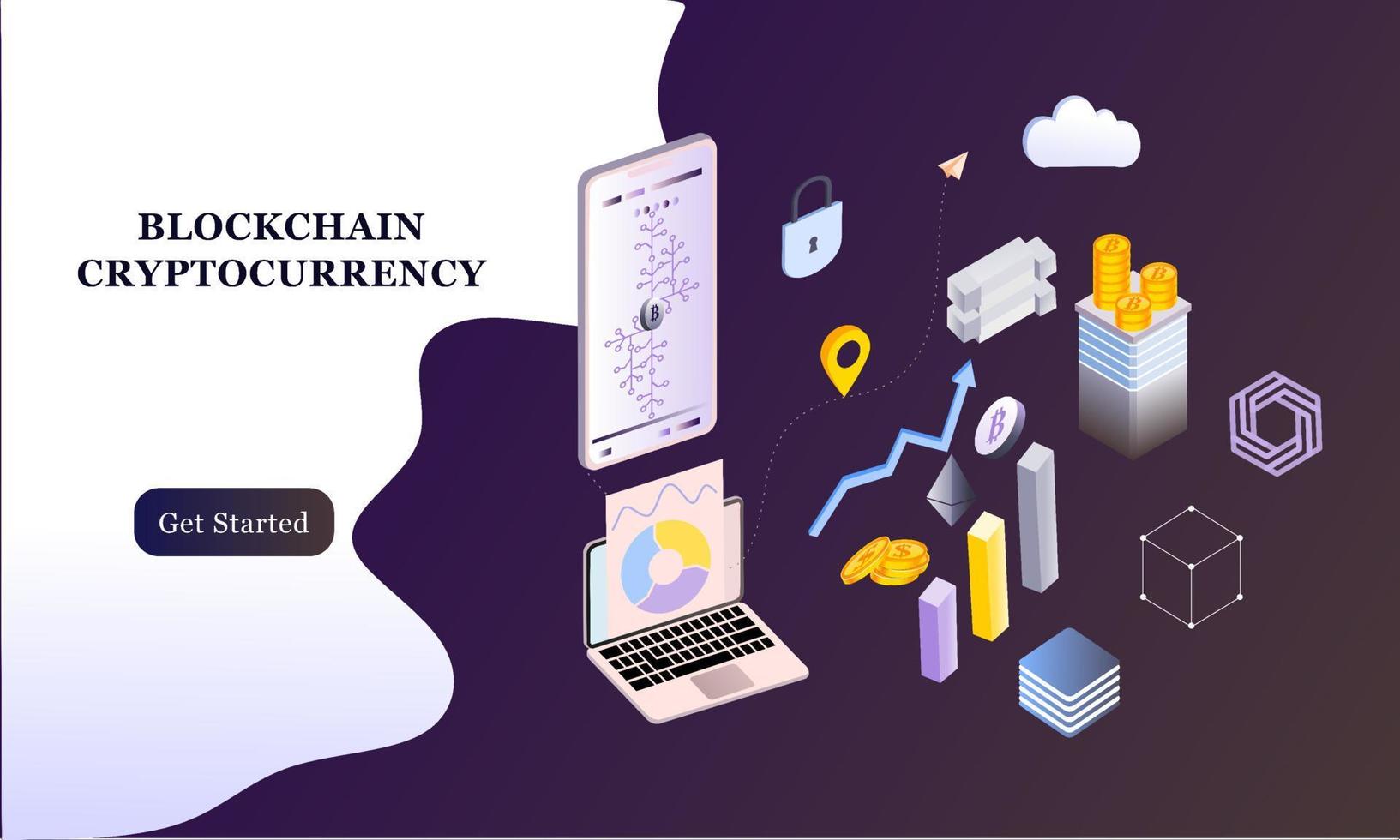 Modern flat design isometric background of blockchain and cryptocurrency for banner and website. Landing page template. Virtual cash transaction, cryptocurrency blockchain concept. Vector illustration