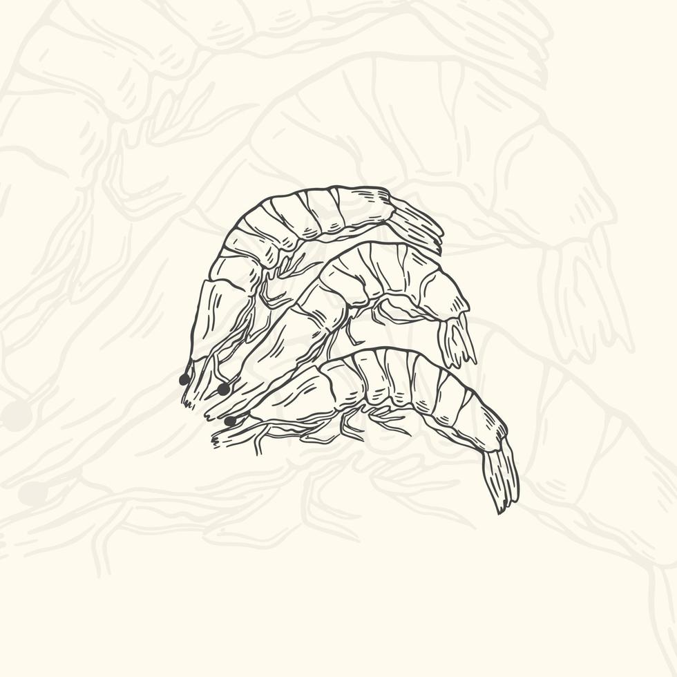 Illustration shrimps sketch food.Hand drawn element design menu. Isolated object in white background. Pro Vector