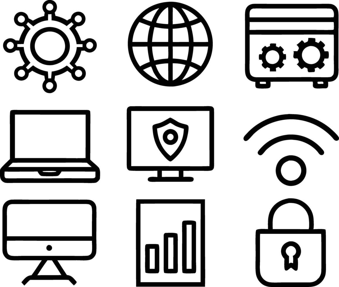 set of technology icon line art style. technology, digital, background, business, network, data, abstract, futuristic, information vector