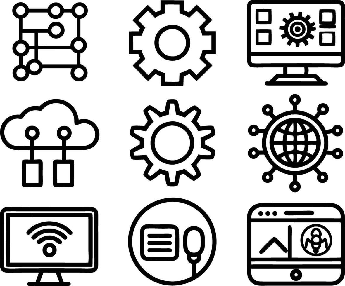 set of technology icon line art style. technology, digital, background, business, network, data, abstract, futuristic, information vector