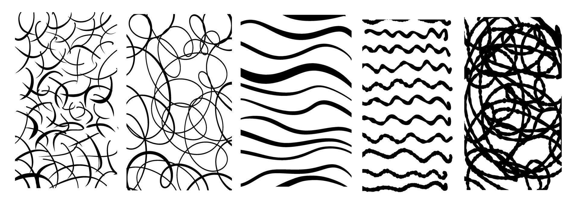 Black horizontal stickers with various hand-drawn pencil crosshatch textures. Naive Doodle Patterns. Design elements for social media posts Pro Vector