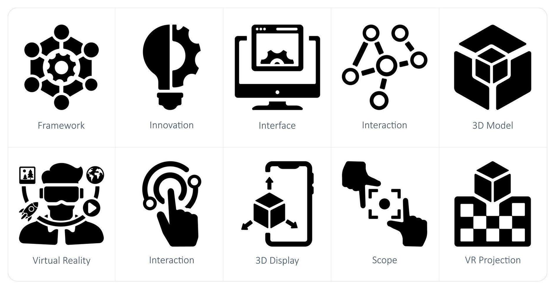A set of 10 virtualreality icons as framework, innovation, interface Pro Vector