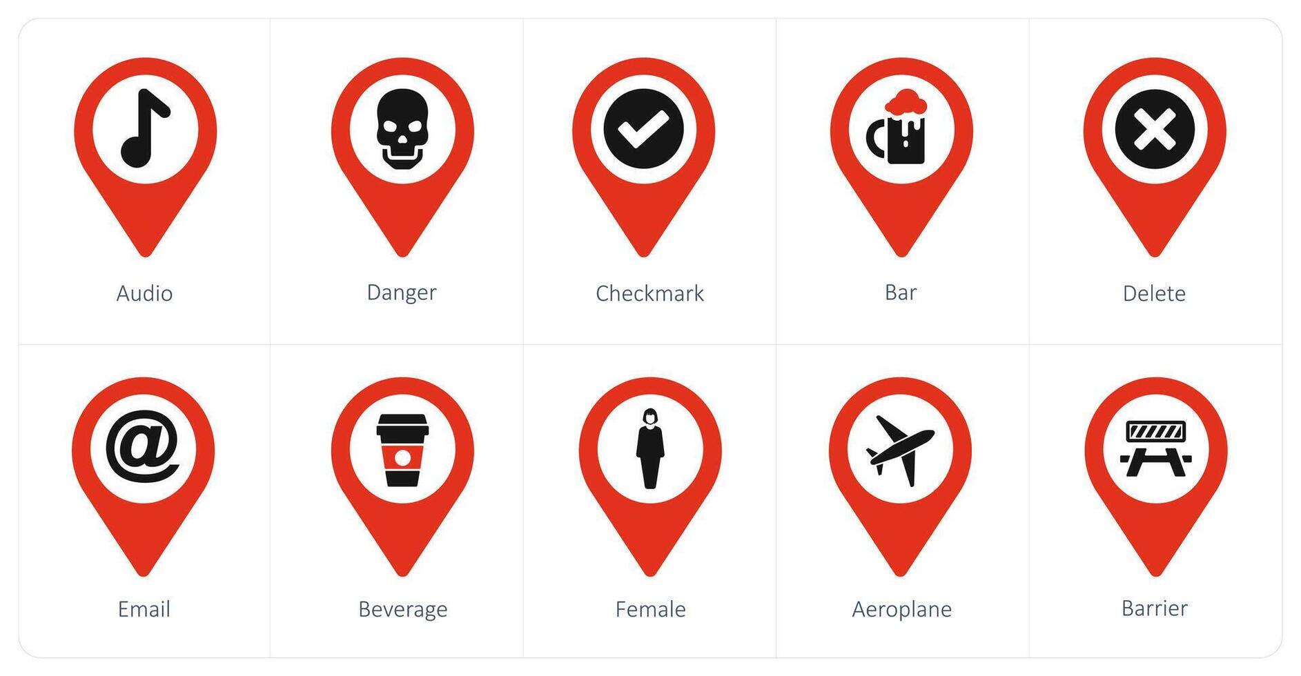 A set of 10 Location Pointer icons as audio, danger, checkmark Pro Vector