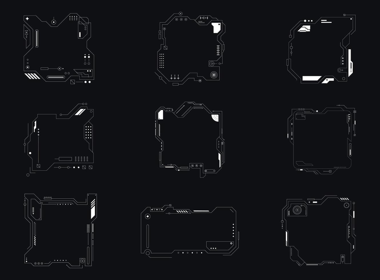 Futuristic interface ui elements. Futuristic HUD elements. Hud interface set. illustration. Pro Vector