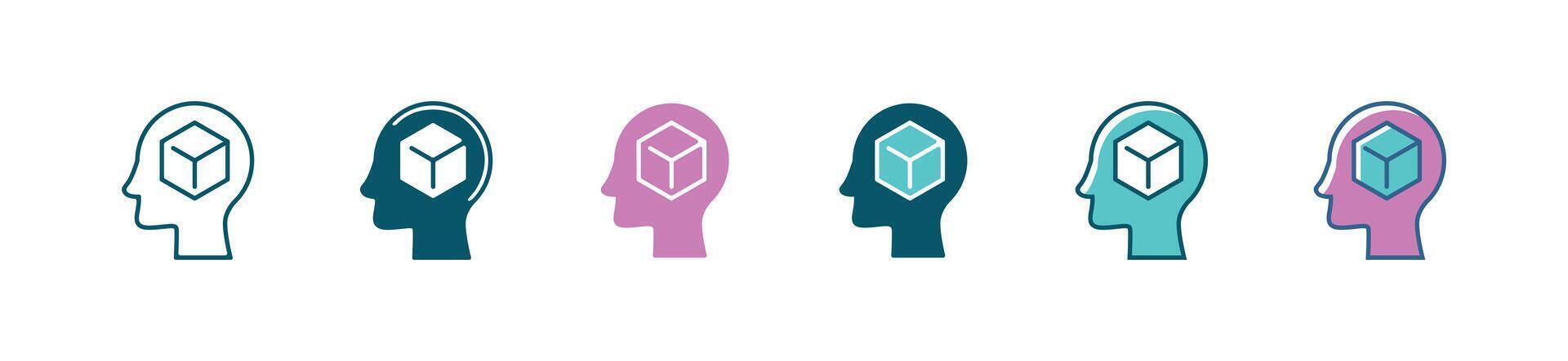 head thinking new project development icon business hexagon cube creative idea innovation symbol illustration startup launch design for web and app Pro Vector