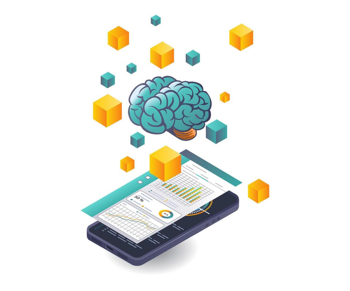 Smartphone Data Analysis in AI Blockchain Technology Pro Vector