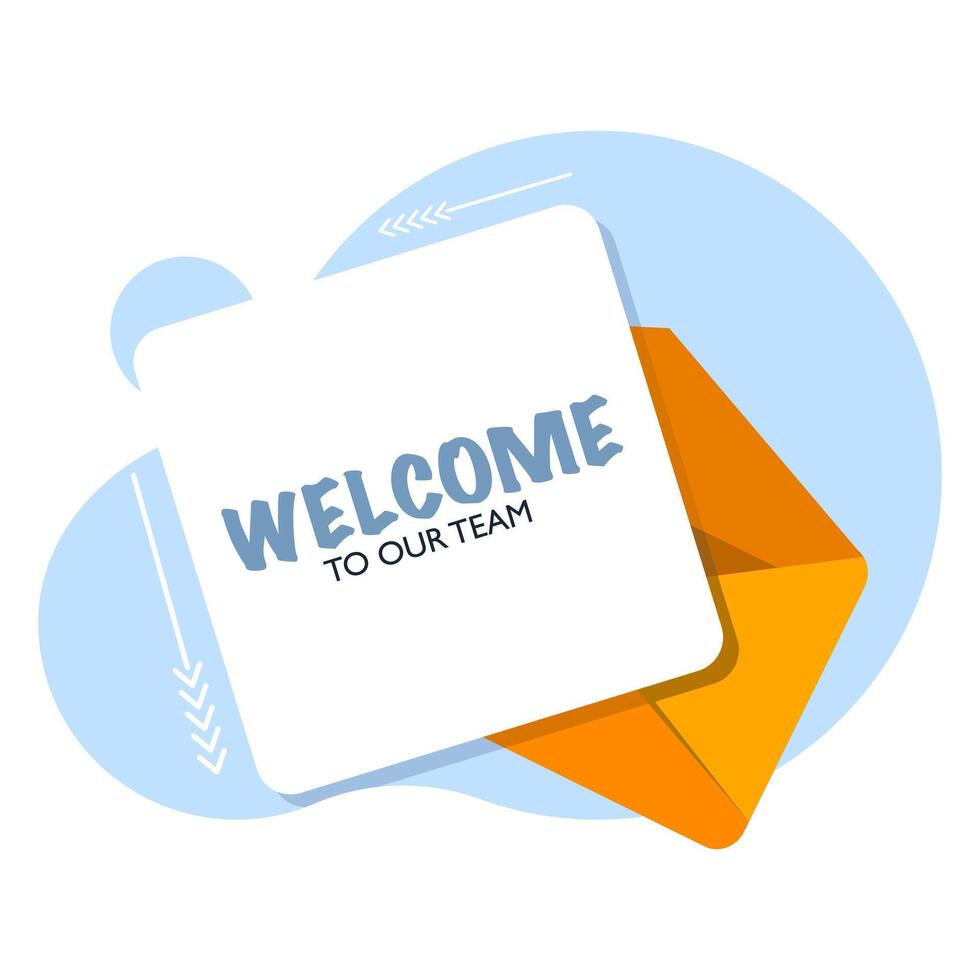 greeting card template concept, welcome to our team, new team member, welcome word, greeting concept, Join our team sign. Flat style. icon, graphic element for landing page, ui, banner. Pro Vector