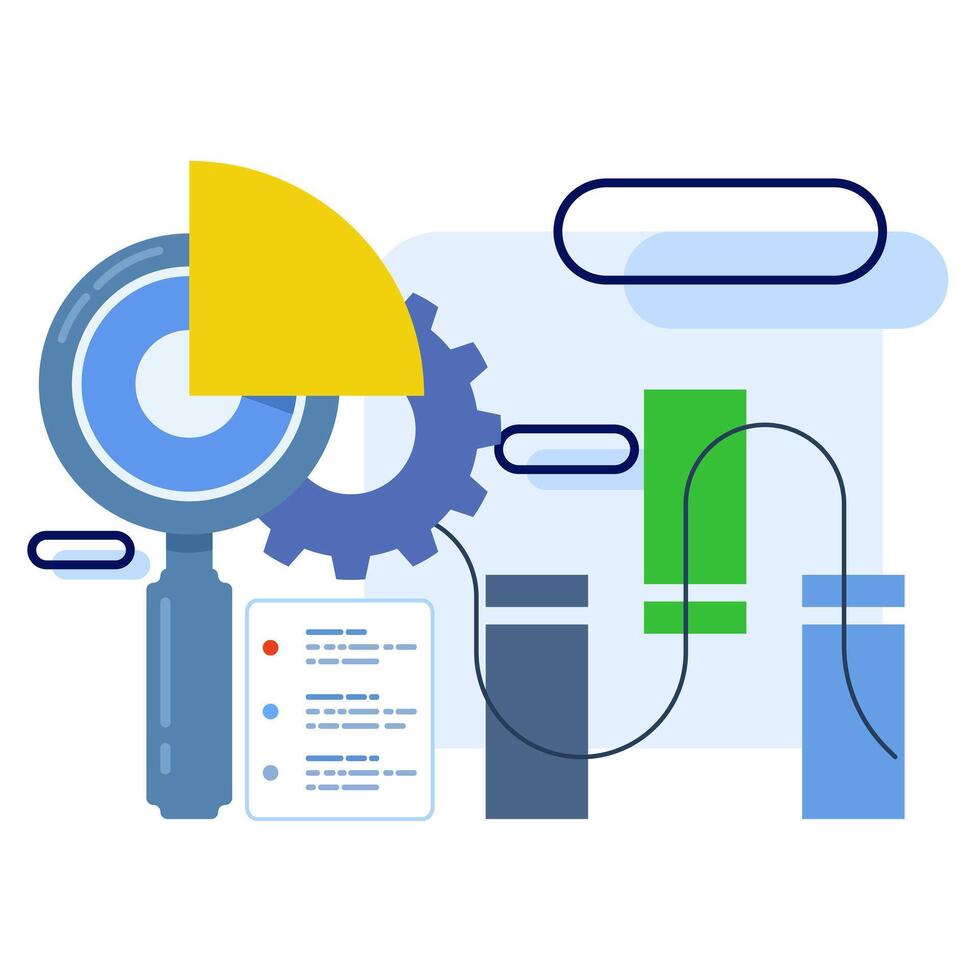 Data science and big data concept. Analysis. Folder with magnifying glass and pie charts. Infographic elements, Data Analysis for websites and mobile websites. modern flat illustration. File. Pro Vector