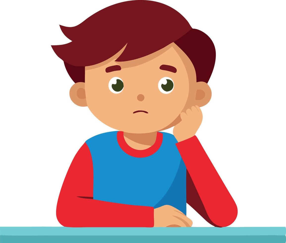 A boy sitting at a table and writing in a notebook, focused on his studies and learning. Pro Vector