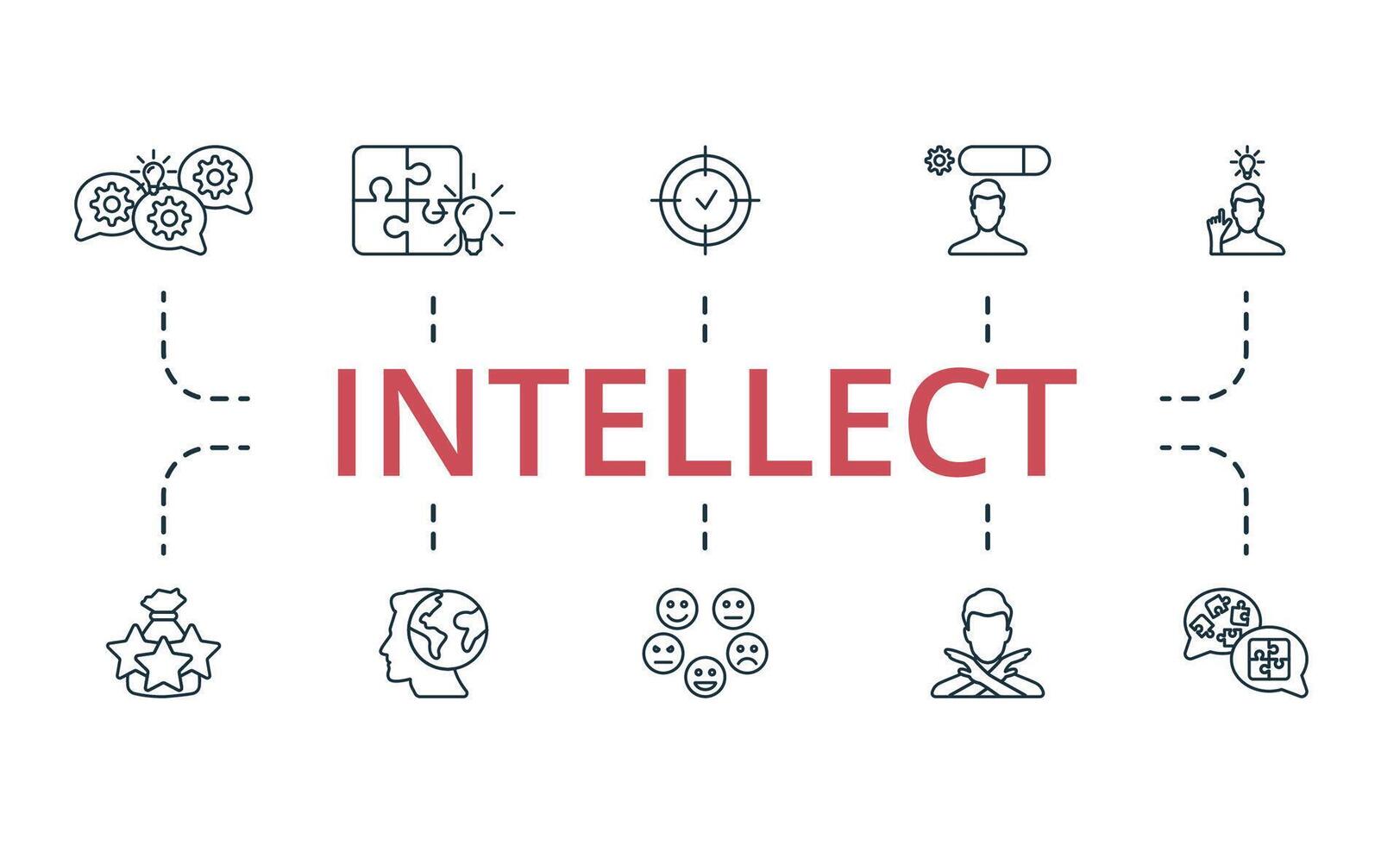 Intellect icon set. Monochrome simple Intellect icon collection. Brainstorming, Solutions, Focus, Skill, Solve The Problem, Experience, Global Thinking, Emotion, Failure, Psychology icon Pro Vector