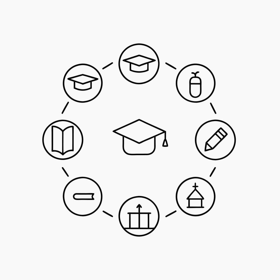 Simple Set of Online Education Related Line Icons. Contains such Icons as Tutorial, E-book, On-line Lecture, Education Plan and more. vector