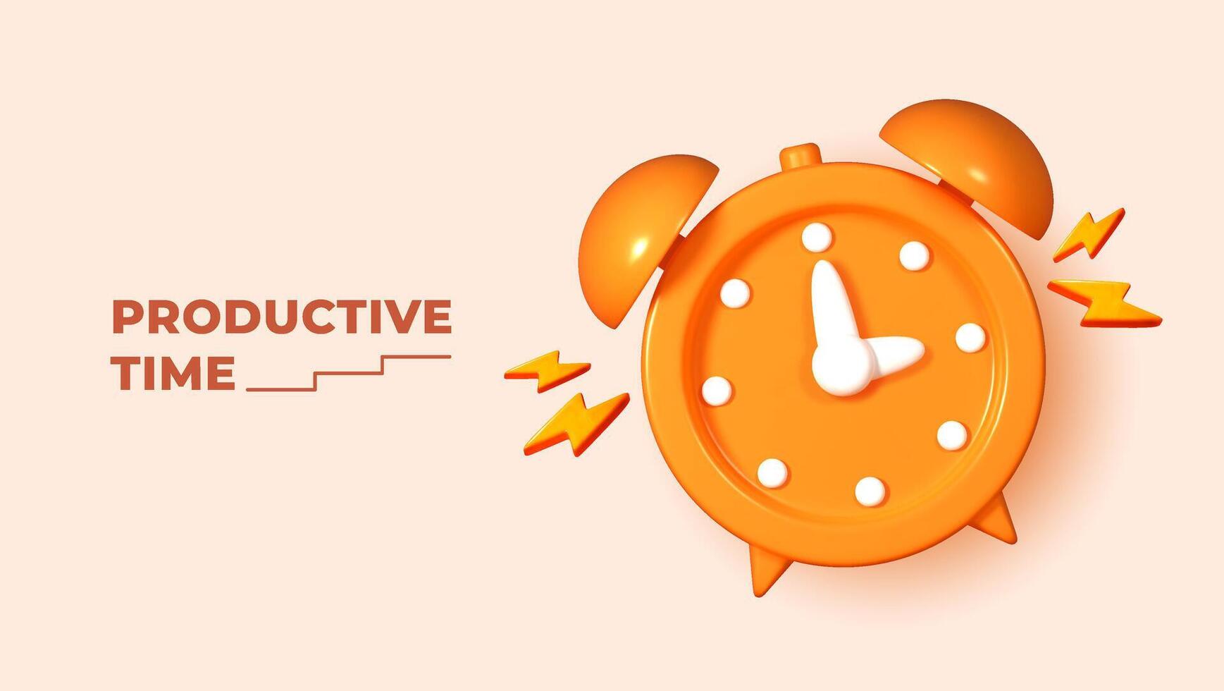 3D rendered ringing alarm clock, isolated on a orange background. Volumetric 3D icon of an alarm clock, symbolizing reminders and deadlines. Pro Vector
