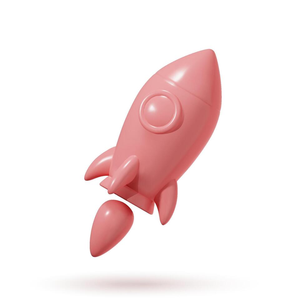 Rocket launching upwards. Spaceship flight. Realistic 3D design element in a plastic cartoon style. Icon isolated on a white background. Pro Vector