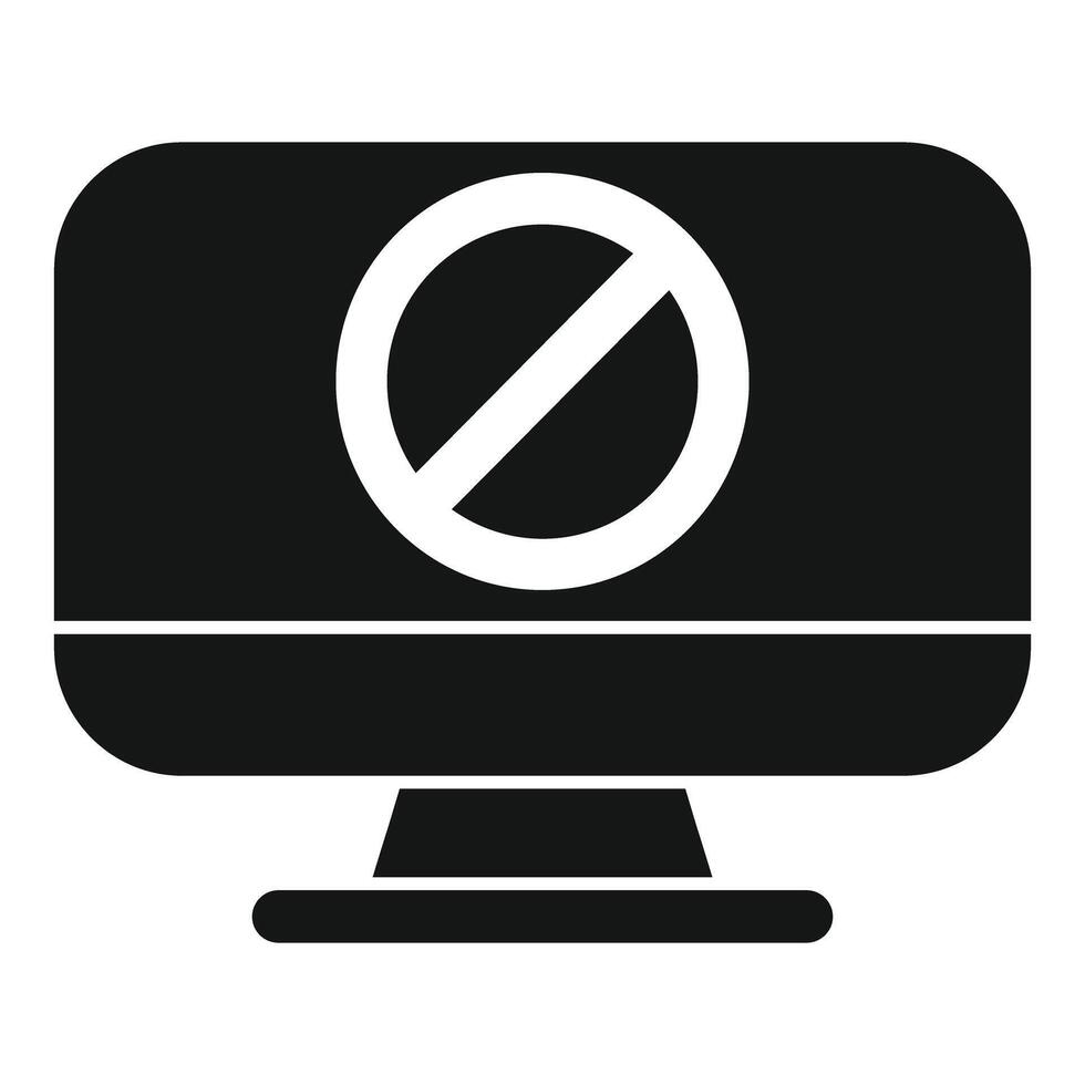 Black desktop computer monitor displaying a prohibitive sign Pro Vector