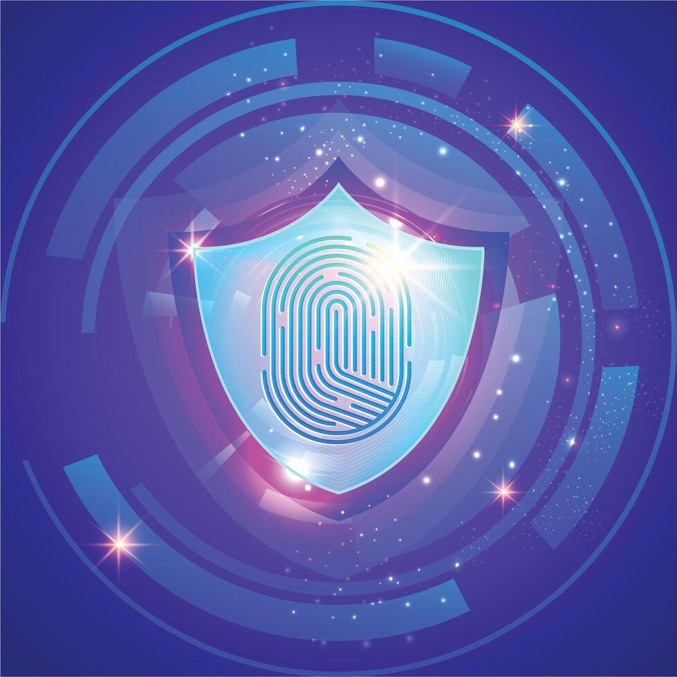 Safe fingerprint Security shield with Digital Elements Gradient Background Pro Vector