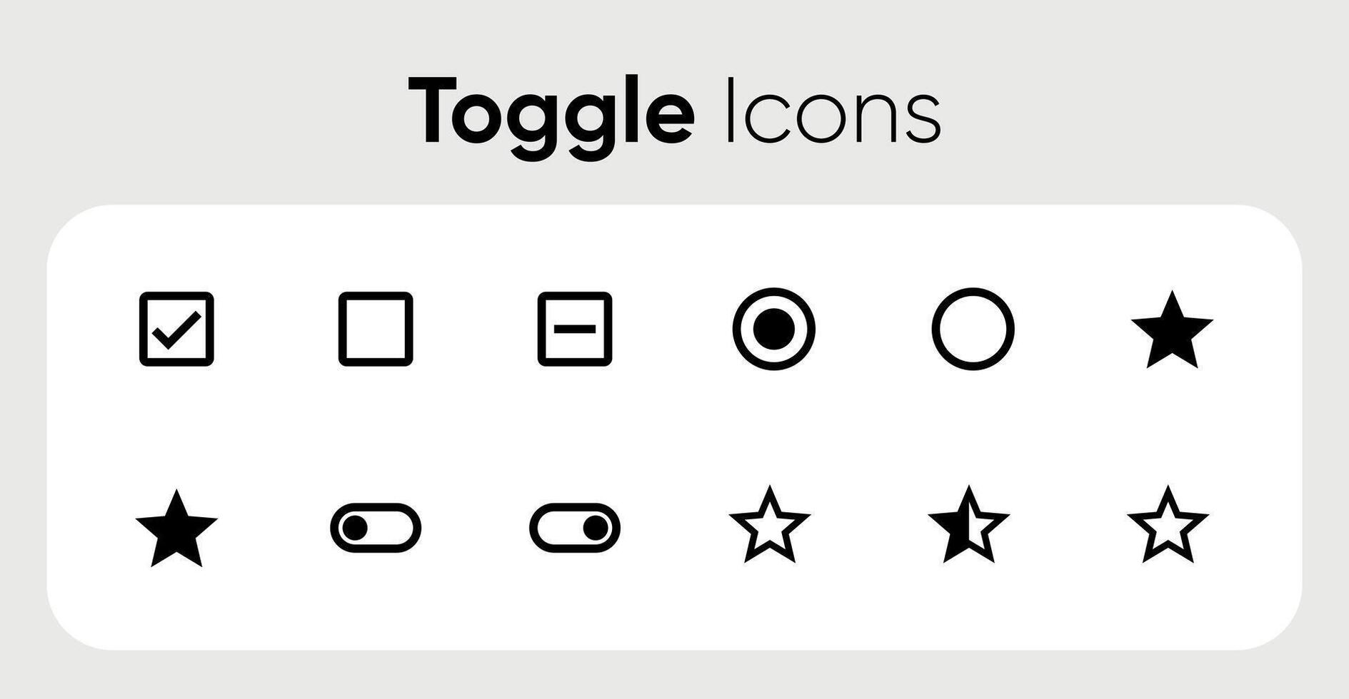 Switch toggle icon set. Outline toggle icon. Turn on and turn off slider. Switch on and off toggle. Power button in line and flat style. Material design switch buttons set Pro Vector