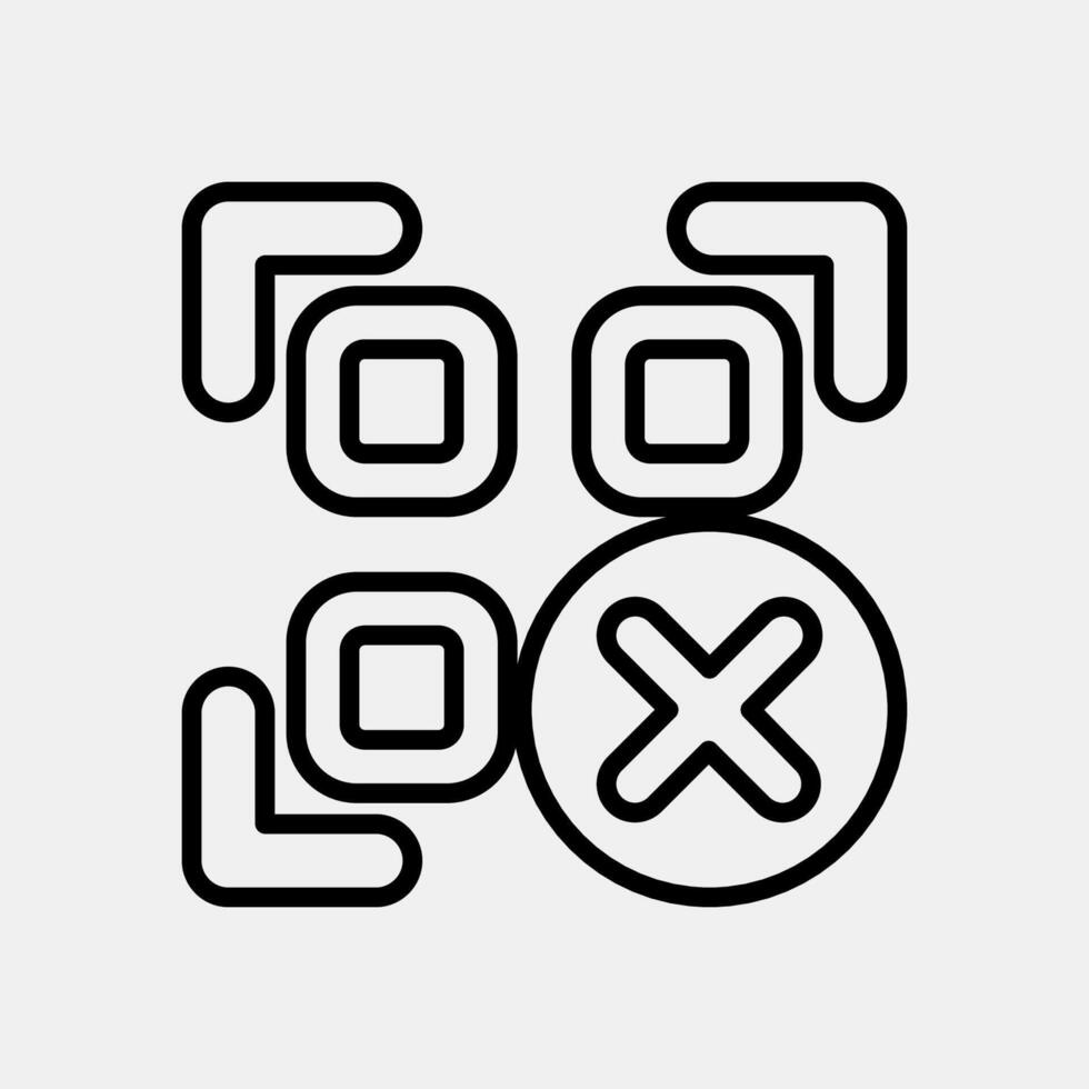 Icon rejected qr code. Barcode and qr code elements. Icons in line style. Good for prints, posters, logo, advertisement,infographics, etc. Pro Vector