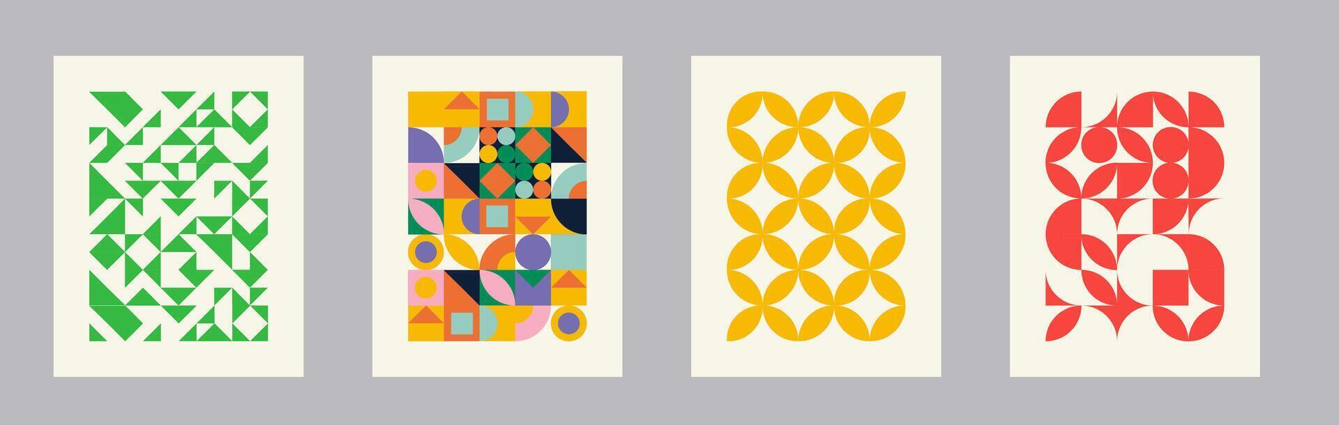 Retro geometric pattern background, abstract circle, triangle and square lines art. Pro Vector