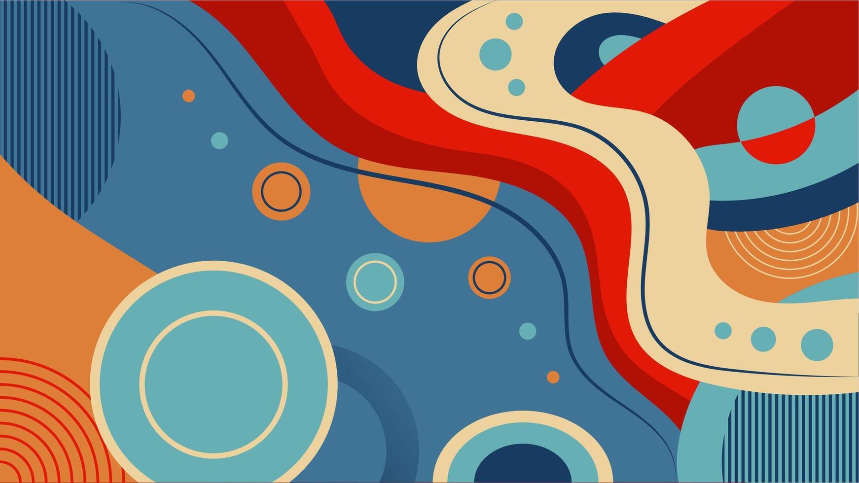 Surrealism Abstract background with lines and circles in blue, red, and orange. Retro background, psychedelic for banner Pro Vector