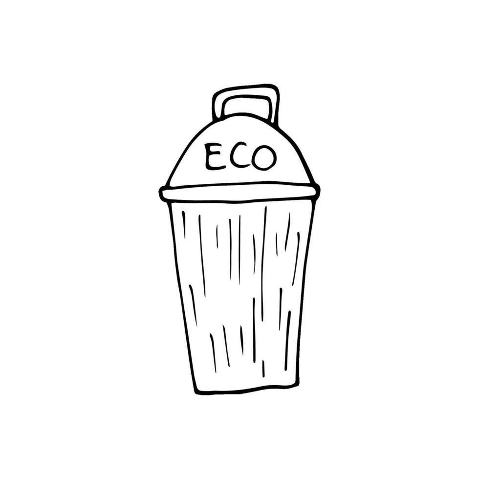 Hand drawn ecology doodle with garbagge can, illustration about environment problems. Sketch elements set for graphic and web design. Pro Vector