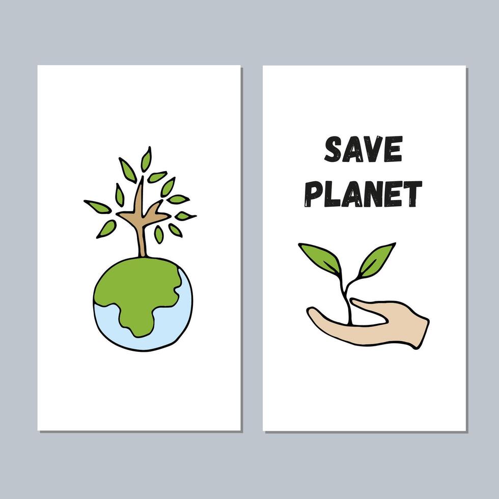 Hand drawn ecology doodle card template, illustration about environment problems. Sketch elements set for graphic and web design. Isolated on white background. Pro Vector