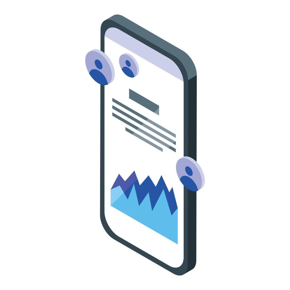 Isometric smartphone showing crm app interface with growing statistics and user icons Pro Vector