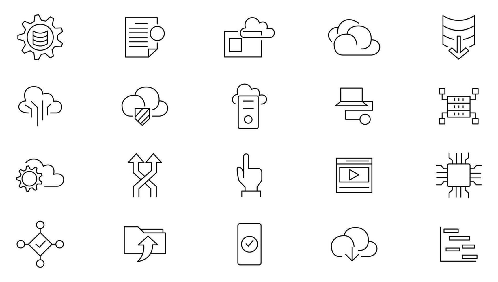 Data storage thin line icon set. Big data, data security, cloud computing and technology outline icon collection. Pro Vector