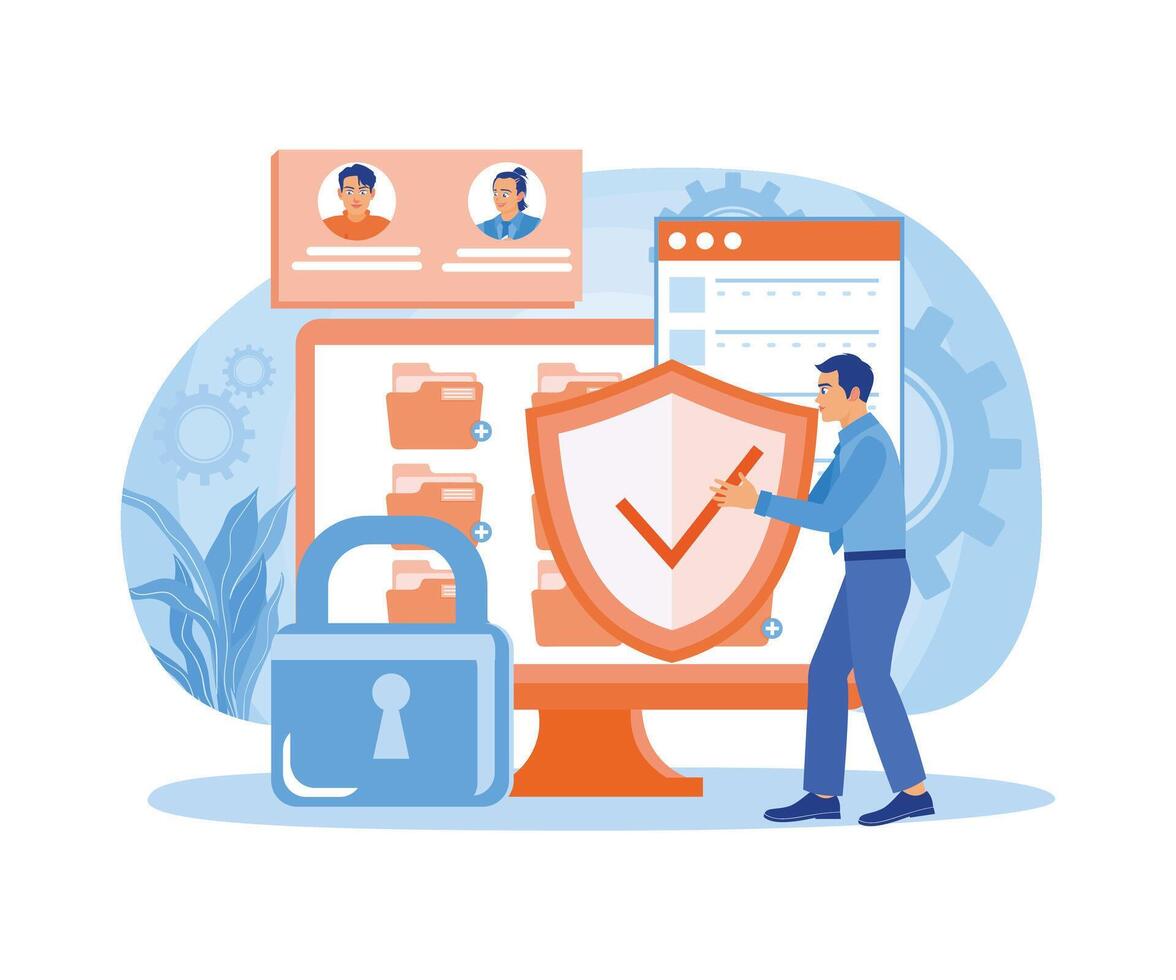 Entrepreneurs store company data. Control web access log in shield protection. Pro Vector