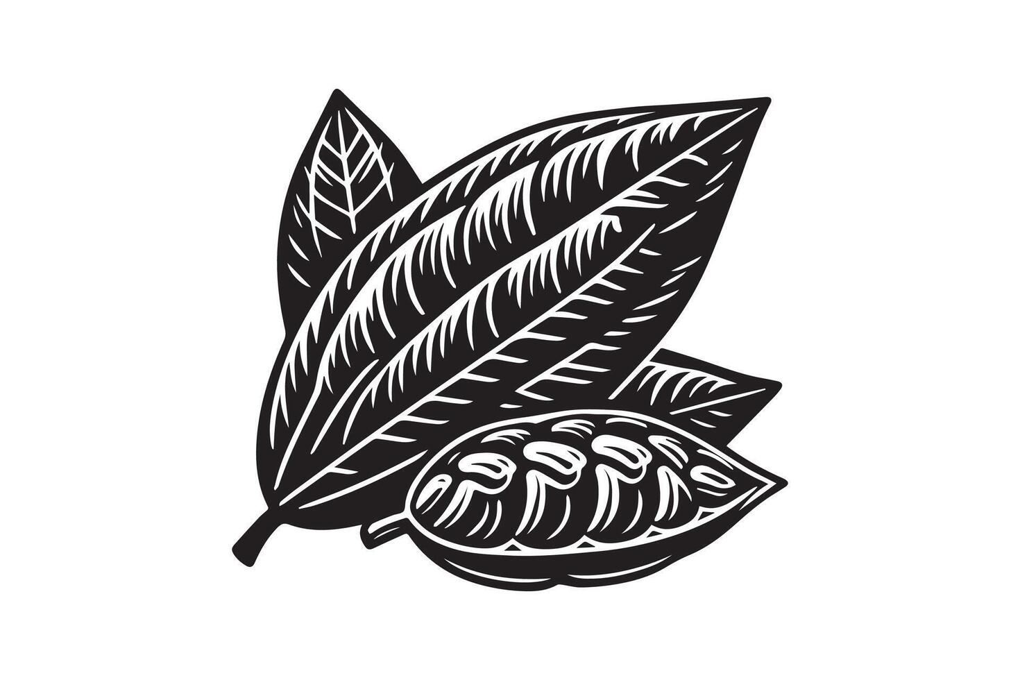 cocoa logo, cocoa bean, cocoa tree, cocoa branches and leaves. Simple illustration of cocoa branch icon Pro Vector