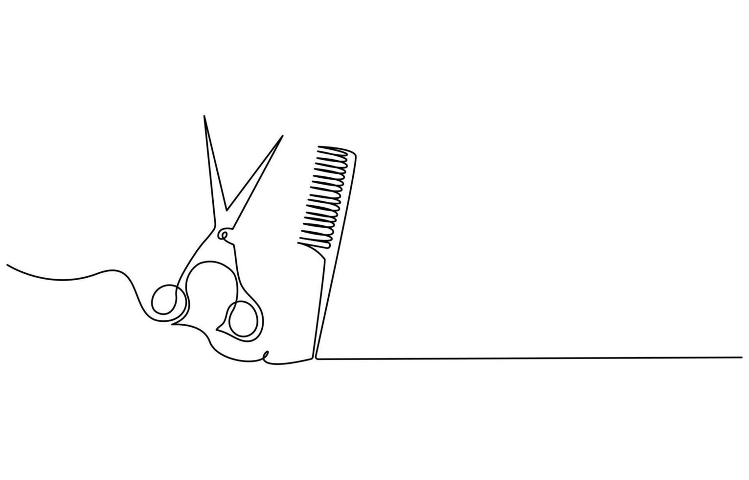 Scissors and comb business icon. Continuous thin line drawing. illustration, Scissor and comb continuous one line drawing illustration Pro Vector