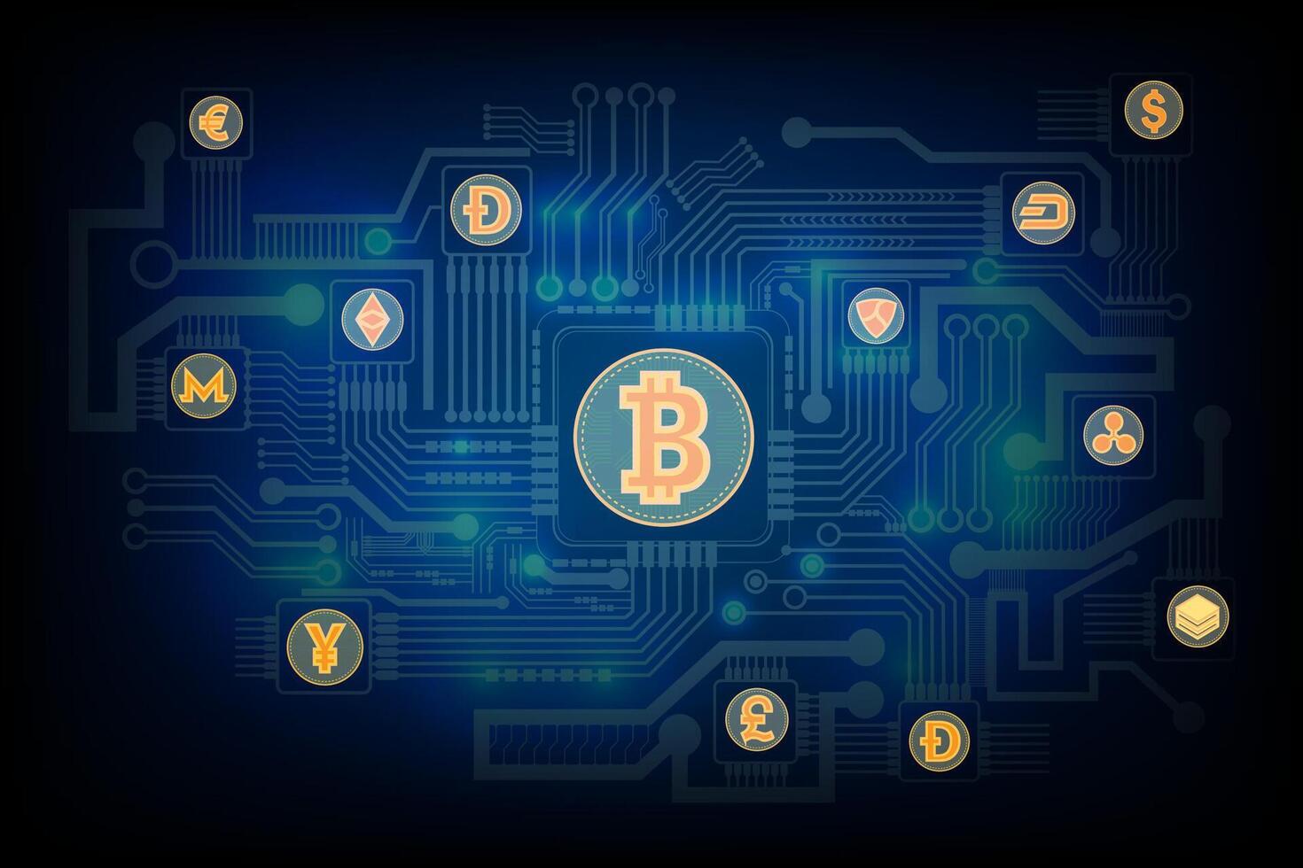 Bitcoin cryptocurrency blockchain abstract background concept Pro Vector