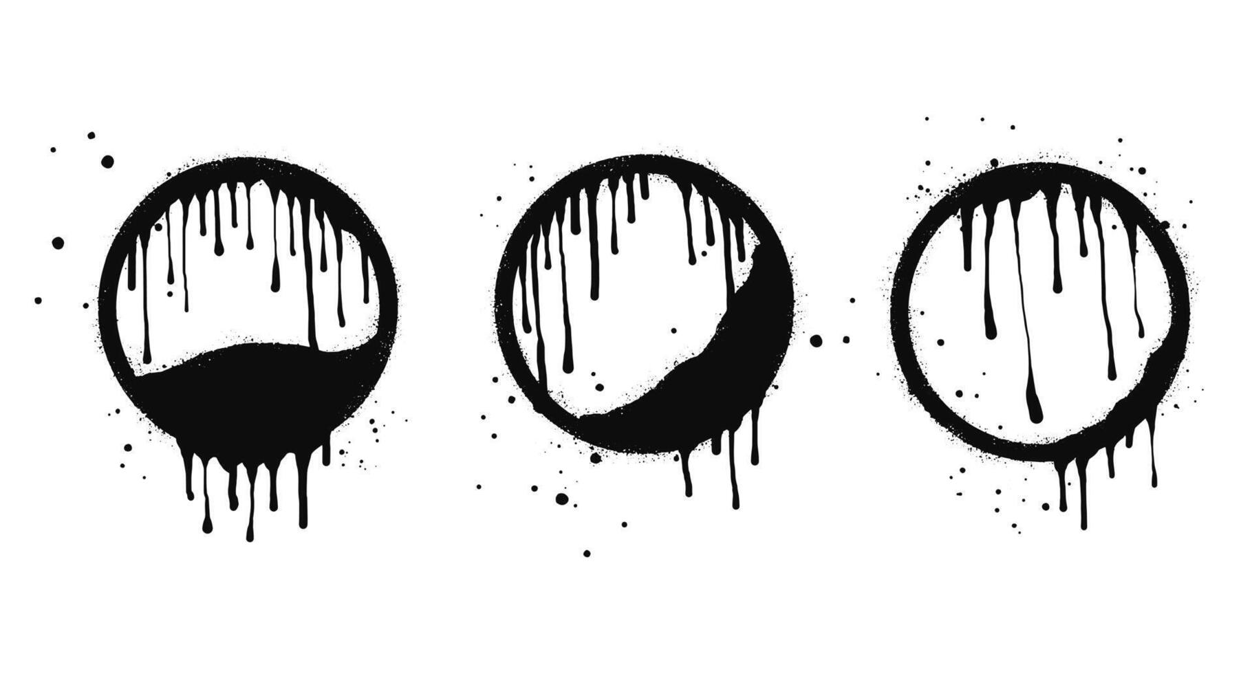 Spray painted frames for text circle and box in black over white. stencils border. isolated on white background Pro Vector