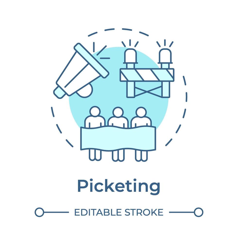 Picketing soft blue concept icon. Labor protest, workers strike. Working conditions. Round shape line illustration. Abstract idea. Graphic design. Easy to use in infographic, presentation Pro Vector