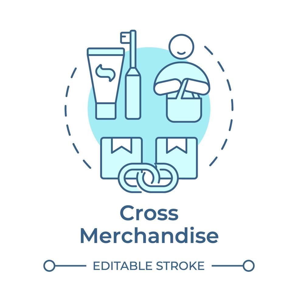 Cross merchandise soft blue concept icon. Complementary product. Additional purchase. Boost sales. Round shape line illustration. Abstract idea. Graphic design. Easy to use in blog post Pro Vector