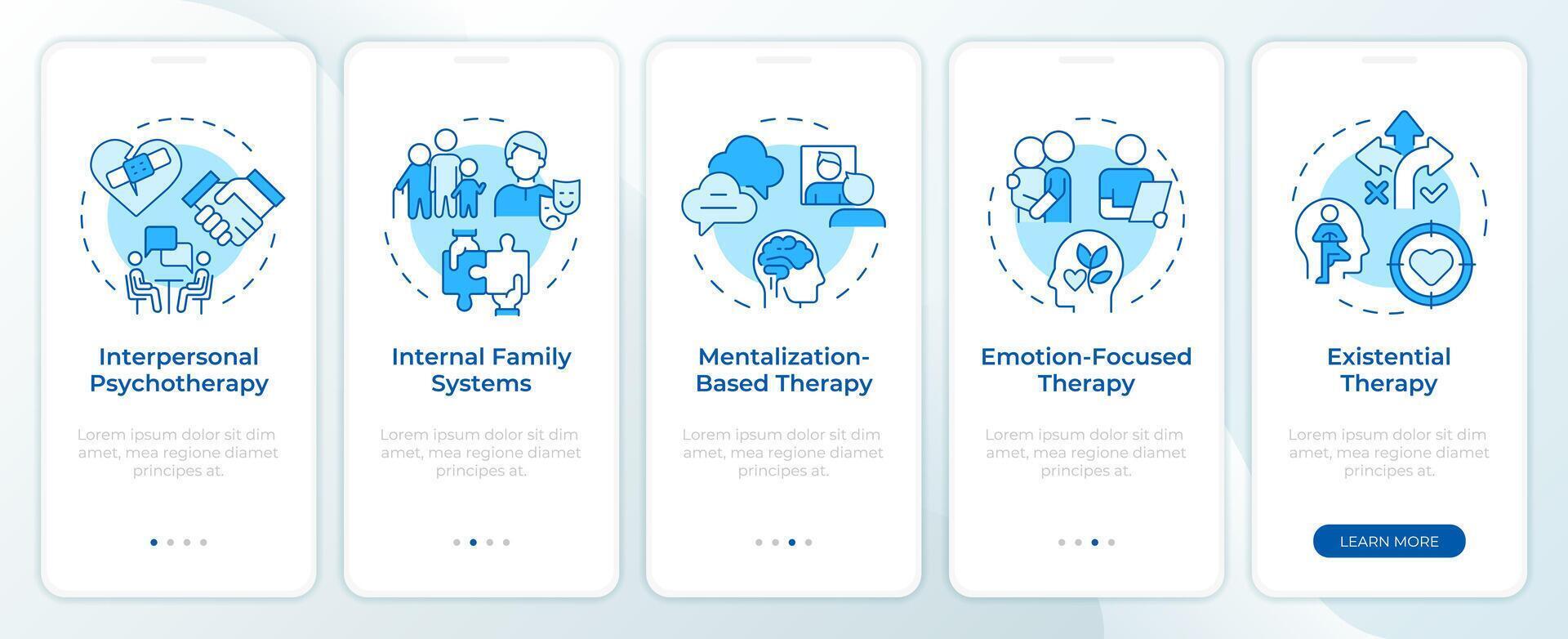 Mental counseling differences blue onboarding mobile app screen. Walkthrough 5 steps editable graphic instructions with linear concepts. UI, UX, GUI template Pro Vector